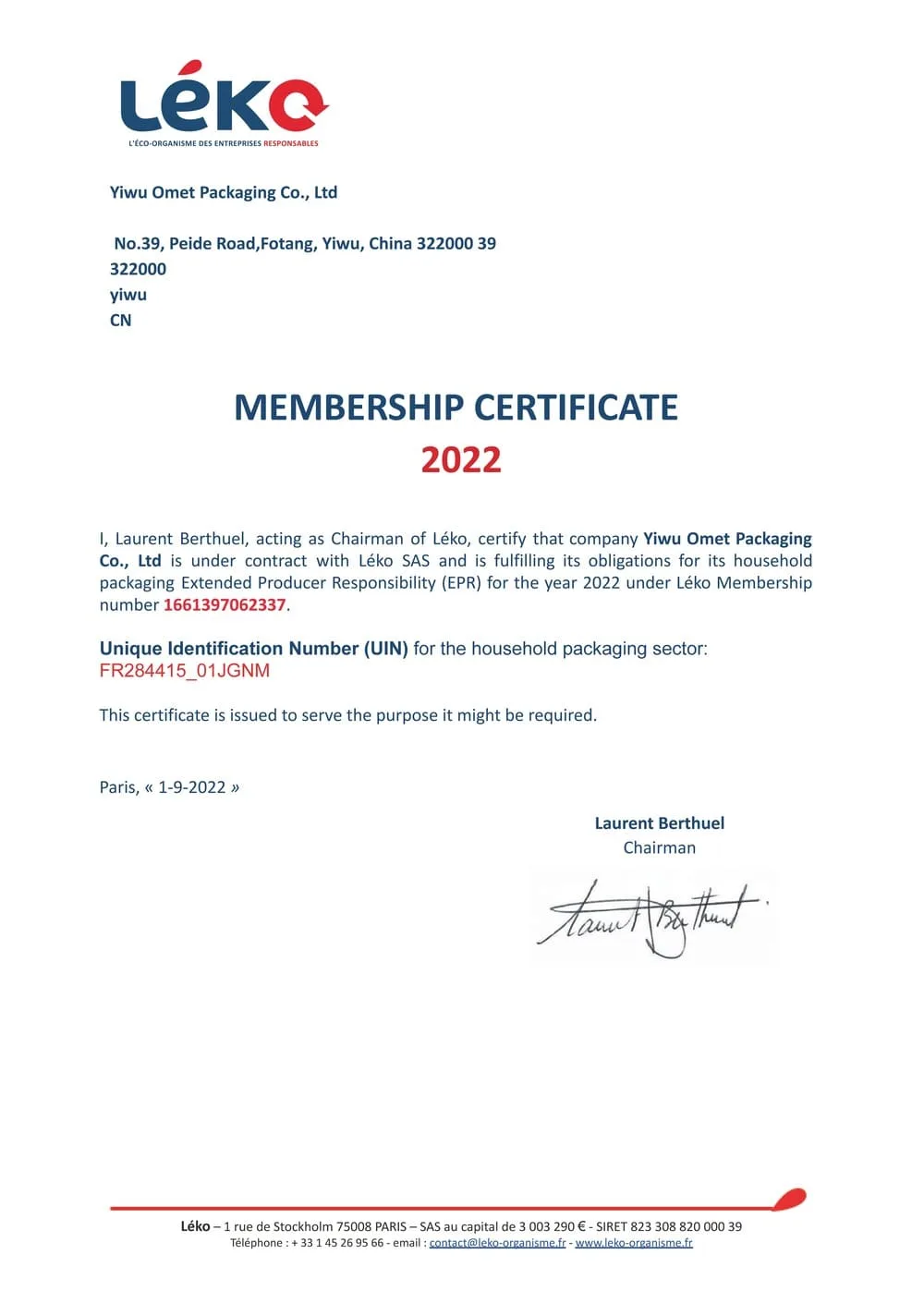 At Yiwu Omet Packaging, our BSCI, FSC™, and EPR certifications are more than just documents. They are your guarantee of ethically sourced materials, responsible manufacturing, and a supply chain you can trust to elevate your brand globally.